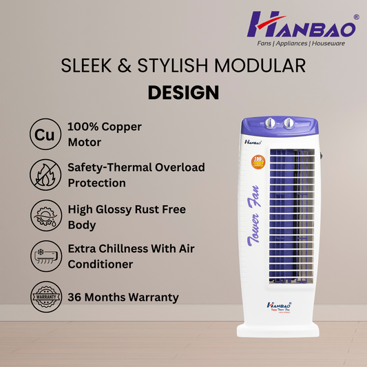 Hanbao Tower Fan- Hawaa, copper coil motor, 24 months Warranty