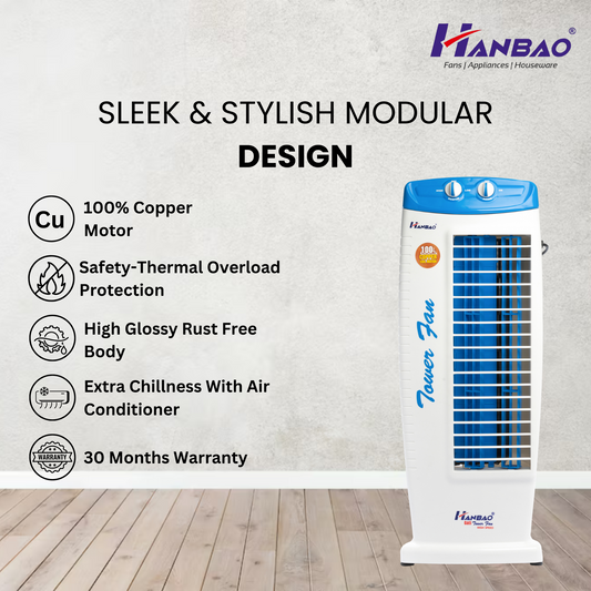 Hanbao Tower Fan- Hawaa, copper coil motor, 24 months Warranty